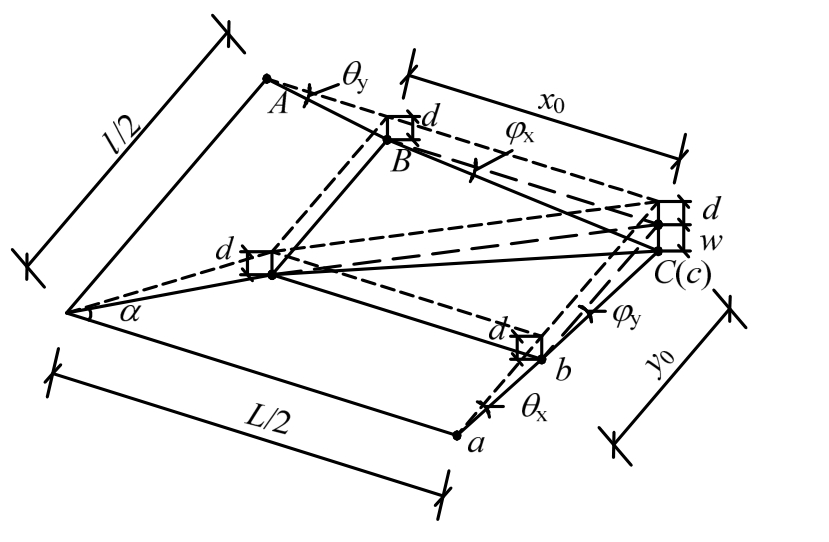 基于经典塑性铰线(屈服线)理论和试验结果,提出本文模型,其适用于混凝土板长宽比≤2,且四边为简支。模型包含几条基本假设,具体为: