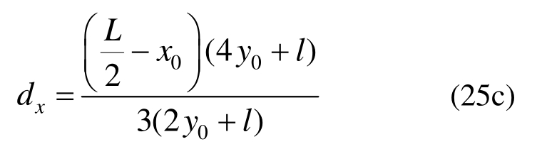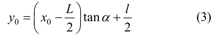 由图8可知,x0和y0是屈服线与中心受拉矩形区域的交点坐标,根据解析几何分析可得: