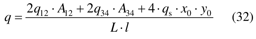 由于混凝土板剪力影响,刚性板块1~4和中部钢筋网的承载力存在一定差别[6]。因此,可知承载力计算公式q,即: