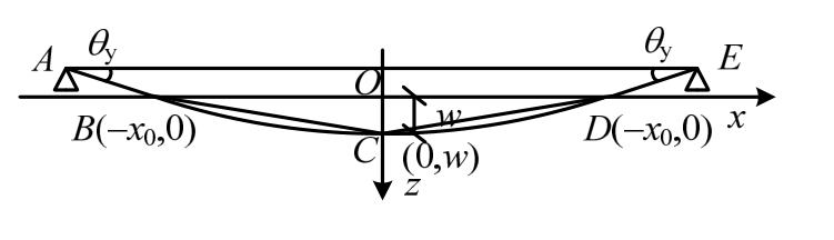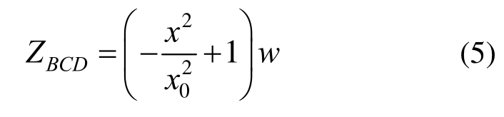 为了确定x0,在坐标参数计算时认为钢筋是抛物线形状,根据C(0,w)和D(x0,0)两点坐标,可得抛物线ZBCD方程为: