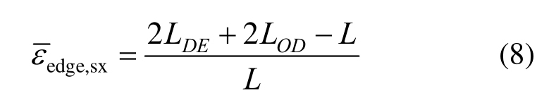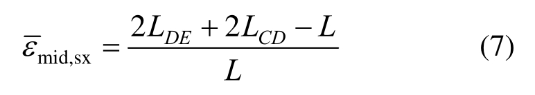 式中:L为变形前钢筋初始长度,即x方向跨度;LDE和LCD为变形后刚性板块和矩形板块钢筋长度。