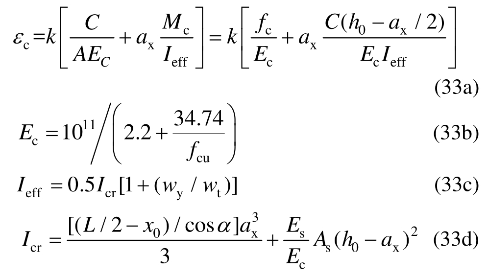 值得指出的是,由于未考虑粘结滑移作用及裂缝处应变集中行为,且通过对比分析,确定