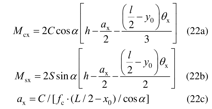 根据文献[6―7]建议,临近极限状态时,简支板转角θx可取值为0.15,定义为θx,1=0.15。值得指出的是,该数值不是破坏条件。