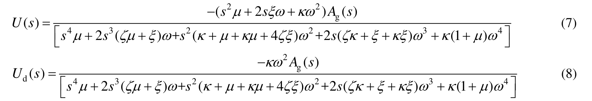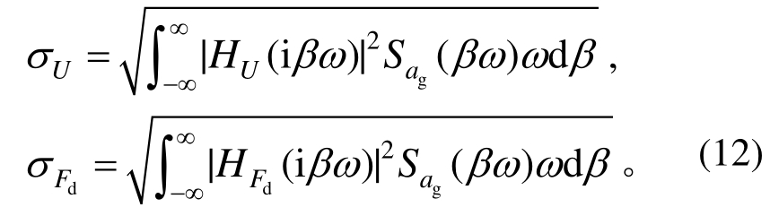 若用Sag(Ω) 表示输入的地震激励的功率谱,根据随机振动理论[26],单自由度体系位移响应的均方根值σU以及SPIS-II力响应的均方根值可以按式(12)求出: