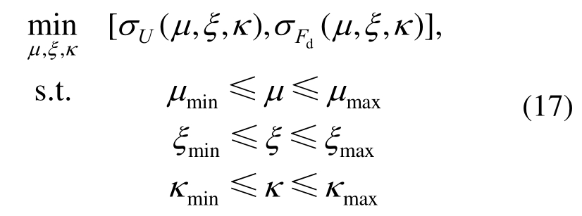 式中:参数μ、ξ、κ为决策变量;μmin、ξmin、κmin分别表示μ、ξ、κ的最小值;μmax、ξmax、κmax分别为μ、ξ、κ的最大值。