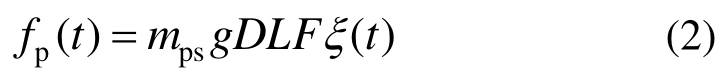 式中:mps为单个行人质量;DLF为动载因子;ξ(t)为随机激励过程(考虑行人激励随机性)或者简谐荷载(确定性的理想周期荷载)。根据Ricciardelli等[17,28-29]的实验结果,可知行人横向荷载可分为与桥梁振动无关的行人荷载以及与桥梁振动相关的自激荷载,而这个划分可以动载因子的定义方式体现出来。这里自激荷载根据袁旭斌[30]的实验结果将其考虑为与桥梁横向振动幅值相关,则式(2)可写为: