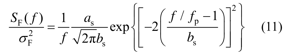 现考虑行人横向荷载的随机性。Ricciardelli等[17]和Ingólfsson等[7-8]在此方面展开了细致研究,但他们实验得到的行人横向激励窄带过程的功率谱需要通过拟合以高斯形状呈现,基于 Pizzimenti根据实验结果得到的行人横向激励功率谱为:
