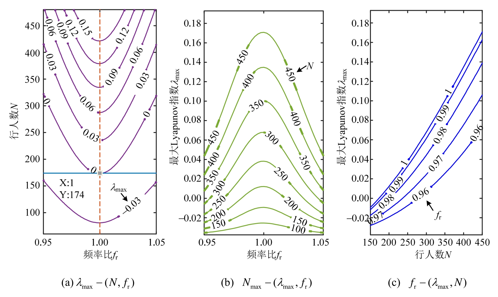 图4λmax、fr、N不同组合等势线图