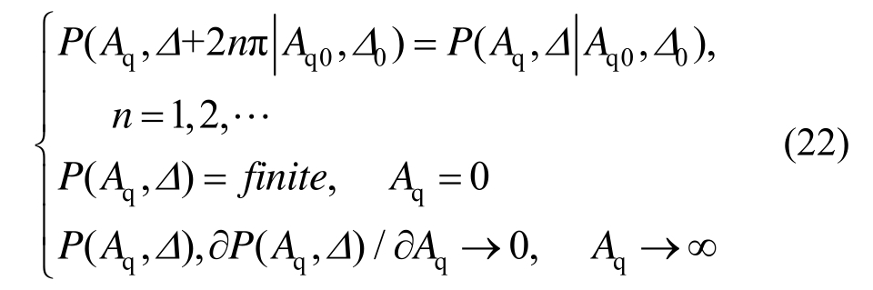 式中,P=P(Aq,Δ)为Aq和Δ的联合概率密度。可知式(21)的边界条件为: