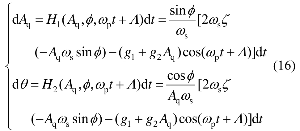 相对Aq和Δ,φ为快变量,将式(18)按φ从0到2π进行确定性平均,得到关于慢变量Aq,Δ的方程: