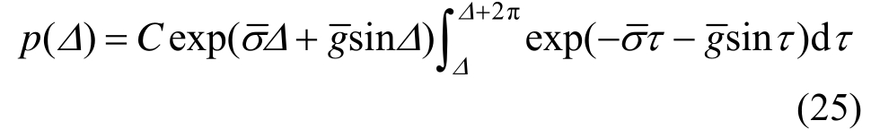 由于Δ(t)是[0,2π]上遍历的马尔科夫过程,其不变测度即稳态概率密度函数p()Δ满足如下的平稳FPK方程: