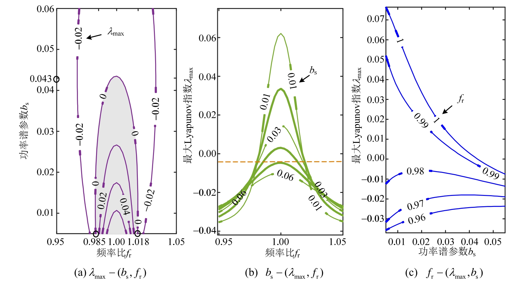 图5λmax、fr、bs不同组合等势线图