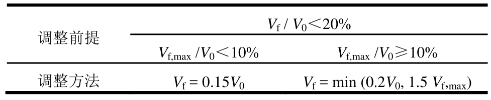 调整前提Vf/V0<20%Vf,max/V0<10%Vf,max/V0≥10%调整方法Vf=0.15V0Vf=min (0.2V0, 1.5Vf,max)