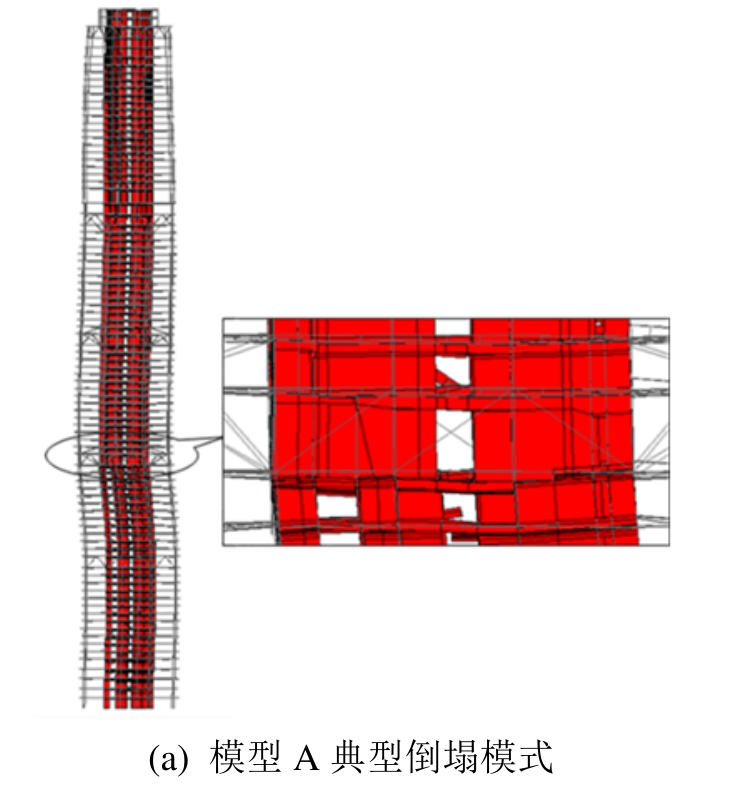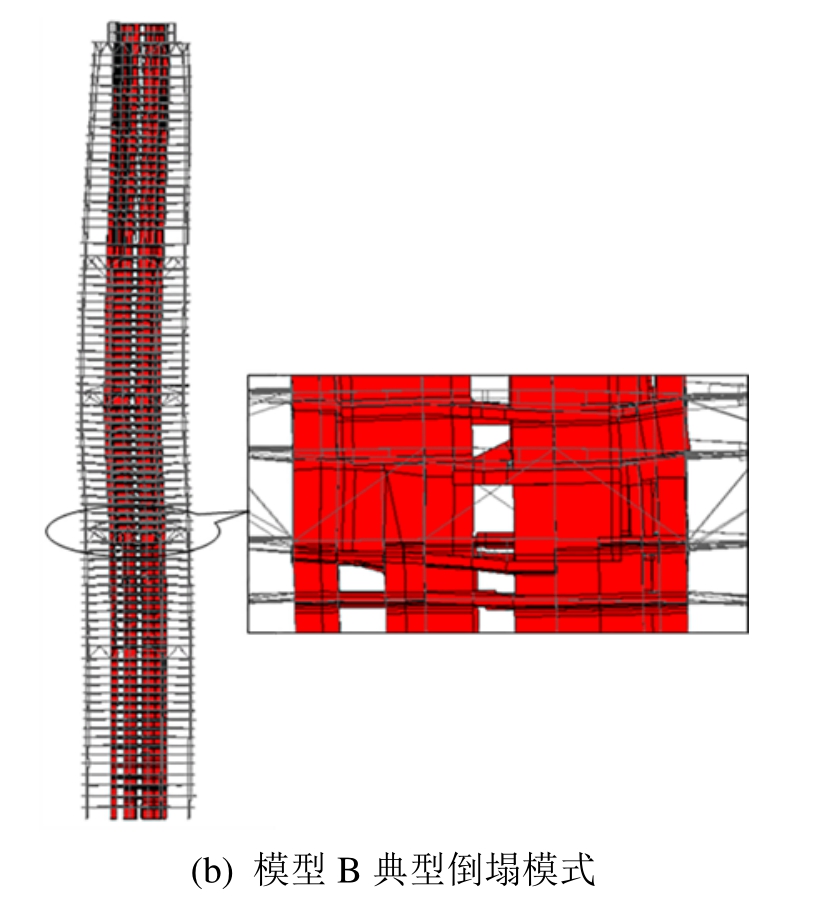 图7 两超高层模型典型倒塌模式对比