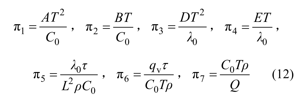 假设温度缩比为CT,土的比热缩比为CC0,土的导热系数缩比为Cλ0。根据相似指标式,可得: