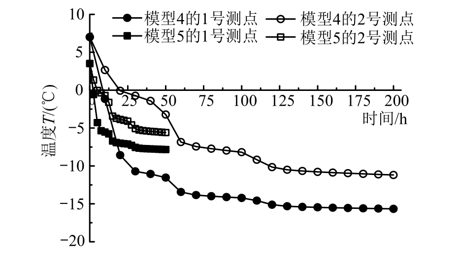 由图4和表9可知,模型4和模型5的温度场相似,即相应测点对应时间的温度值是2倍的关系。这表明,采用变换后的模型土进行模型试验时,本文给出的模型土热物参数是合理的。
