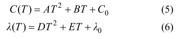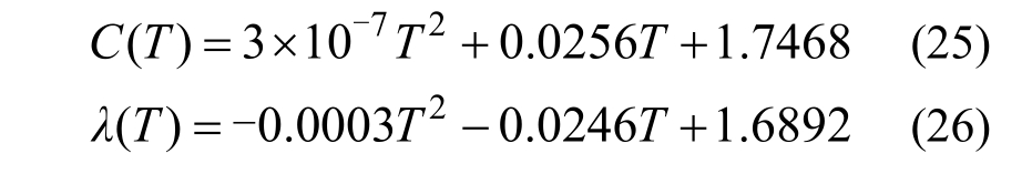采用二次函数表示的原型土比热和导热系数与温度的关系为: