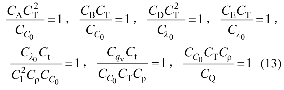 根据相似原理,相似的物理现象可以用同一个微分方程进行描述,且其单值条件相似[22]。比较原型与模型的平衡方程,整理后得到 7个相似准则,即: