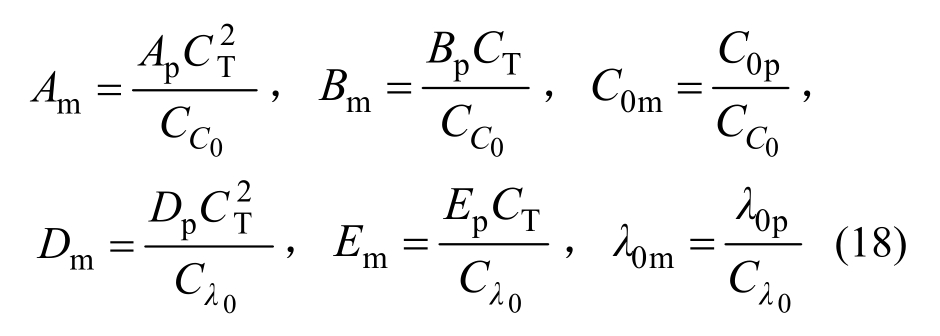 可得温度缩比CT=1,即模型中各点的初始温度和第一类边界条件与原型中对应点的初始温度和第一类边界条件相同。由: