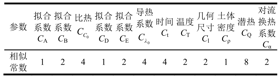比热参数拟合系数CA拟合系数CBC导热系数C0拟合系数CD拟合系数CEC时间Ct温度CT潜热CQλ0几何尺寸Cl土体密度Cρ相似常数 1 1 1 1 1 1 4 1 2 1 1