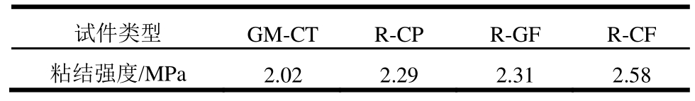 试件类型 GM-CT R-CP R-GF R-CF粘结强度/MPa 2.02 2.29 2.31 2.58