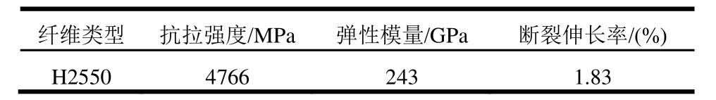 纤维类型 抗拉强度/MPa 弹性模量/GPa 断裂伸长率/(%)H2550 4766 243 1.83