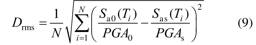 T1],其中m为保证振型参与质量总和达90%需要考虑的最高阶振型数,μΔ为结构的位移设计值。Ambraseys等[58]通过欧洲强震数据库提出了参数Drms(式(9))。
