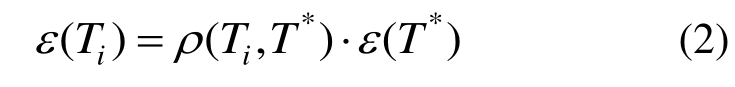 对于某一结构进行抗震设计时,结构基本周期对应的加速度反应谱值以及超越概率都应大于其它周期。结构基本周期点对应反应谱值采用此周期点处的UHS值是合理的,但在其它周期点不应采用具有相同超越概率的UHS值[31]。为反映不同周期点处谱值的差异与联系,Baker基于特定周期点T*(一般取结构基本周期点)的ε参数ε(T*),并利用任意两个周期点处ε参数的相关系数ρ(Ti,T*)(地震动的固有特性)[30,32]来计算其它周期点Ti处的ε(Ti)(式(2)),从而确定其它周期点处反应谱值。