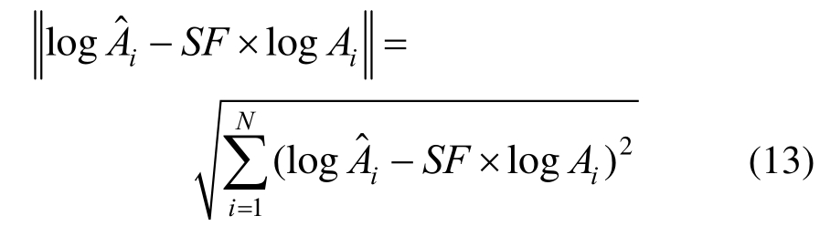 Reyes和Kalkan[60]则是在0.2T1~1.5T1范围内,令缩放后反应谱与目标谱对数值之差的欧氏范数最小,来确定缩放系数SF(如式(13))。