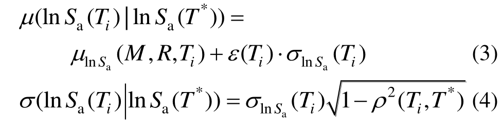 Baker正是考虑了任意两周期点ε参数的相关性,提出了具有合理的概率统计意义的条件均值谱(CMS,Conditional Mean Spectrum)[31],其均值和方差可见式(3)和式(4)。
