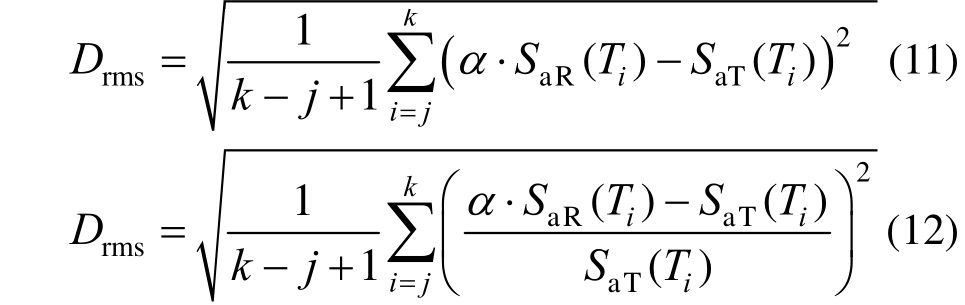 式(9)和式(10)确定的误差参数,关注的是T1到TN频段的谱形匹配,或者说是关注结构前N阶振型的影响。进一步考虑,此频段的范围也可根据结构关注的频段或振型范围进行调整,当关注结构第j到第k阶振型影响时,可采用式(11)或标准化的式(12)[56]来计算误差参数。