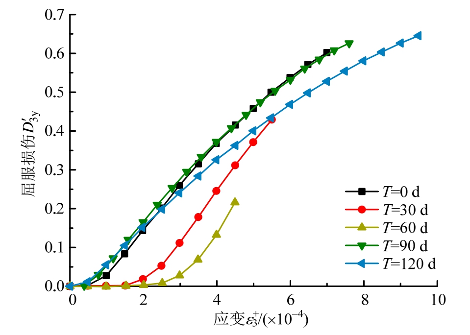 图12~图14分别显示了不同侵蚀程度混凝土断裂损伤变量D3R和屈服损伤变量D3y、