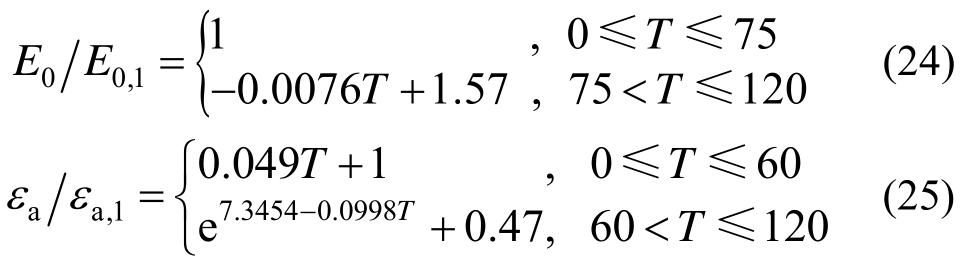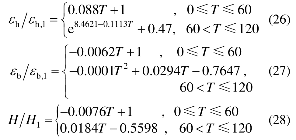 其中,E0,1、εa,1、εh,1、εb,1、H1分别为未侵蚀状态(T=0 d)混凝土对应力学特征参数。