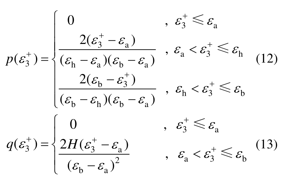 )采用简单的三角形分布形式就能很好的拟合真实的应力-应变试验曲线,并能体现出细观非均质的损伤演化机制。图中εa为初始损伤应变;εh为p(