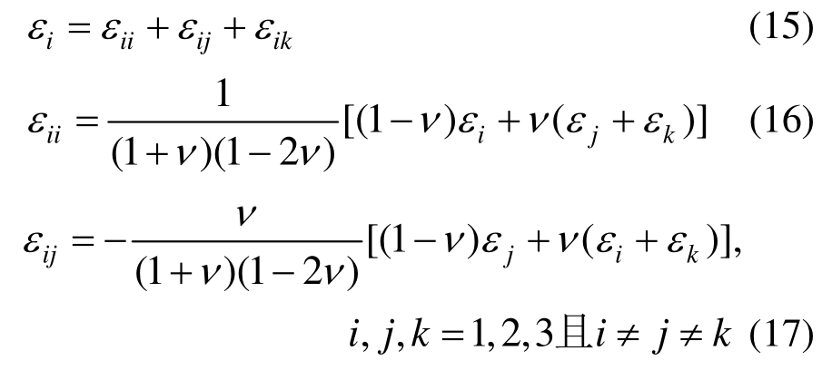 首先基于Lamitre“等效应变”假设,认为材料损伤状态对应应变与理想弹性状态等价。根据广义虎克定律,弹性体各应变分量满足如下关系: