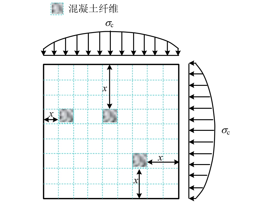 Petersen等[2―3]测量了冻融后混凝土棱柱体试件不同位置处的相对动弹性模量RDME与冻融循环次数N的关系,试验证明了冻融损伤在构件截面内的分布具有不均匀性。同时,诸多试验[1,5,21―23已测得混凝土强度和对应的动弹性模量数值。因此,可采用RDME作为联系混凝土强度和不同冻融损伤程度的桥梁,将构件截面按照冻融深度划分为不同部分,各部分又由不同损伤程度的混凝土纤维组成,具体计算步骤详述如下: