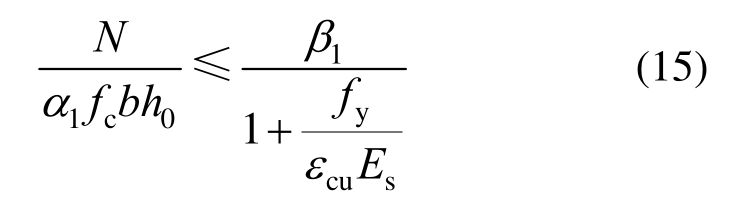式中:α1和β1为等效矩形应力图参数;b为截面宽度;h0为截面高度,当满足该公式时为大偏心受压破坏。对不同轴压条件下的计算和分析如下。