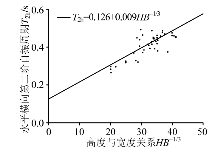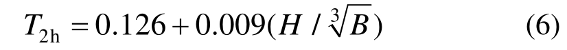 式中:T2h为结构水平横向第二阶自振周期。该方程的回归分析的决定系数R2=0.645。