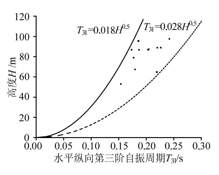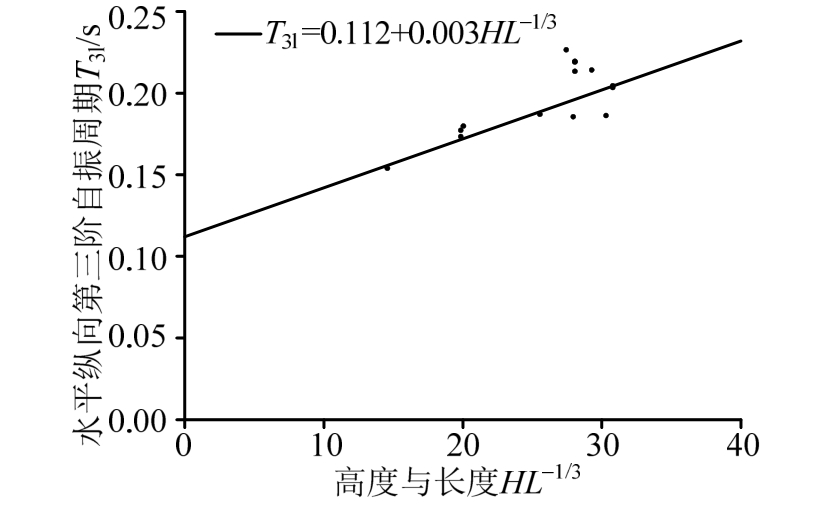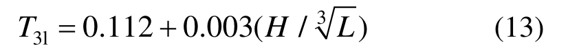 式中:T3l为结构水平纵向第三阶自振周期。该方程的回归分析的决定系数R=2 0.591。