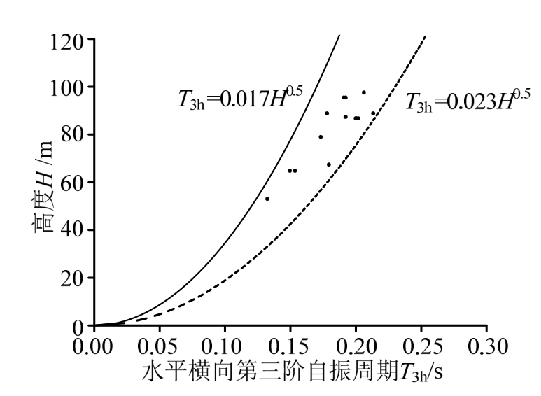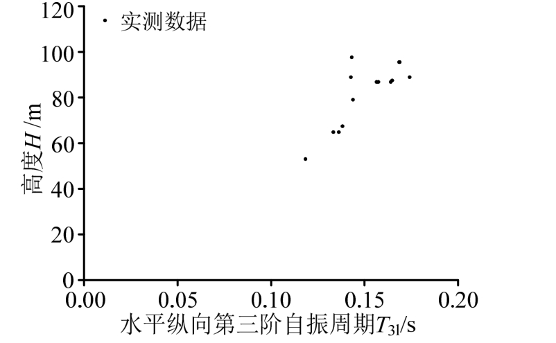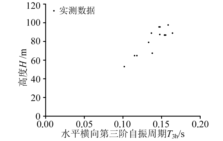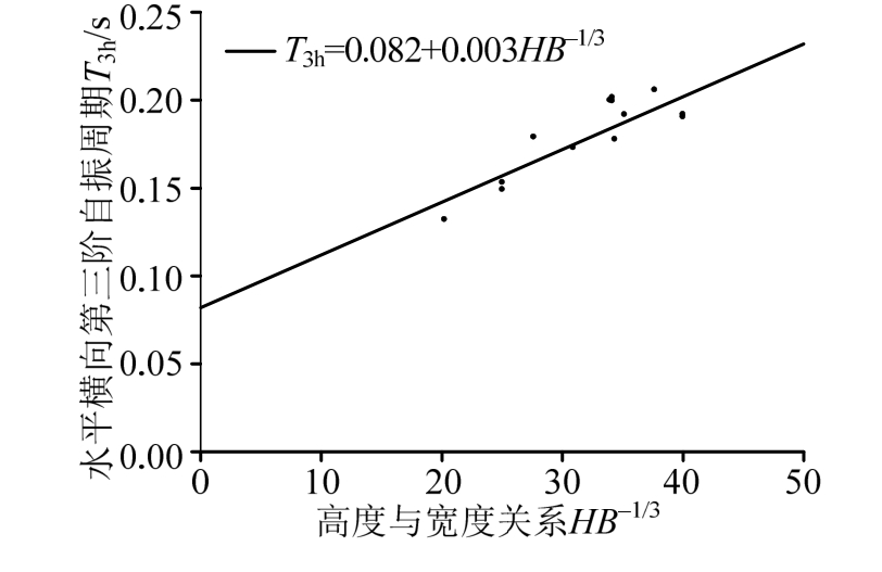 式中:T3h为结构水平横向第三阶自振周期。该方程的回归分析的决定系数R2 = 0.609。