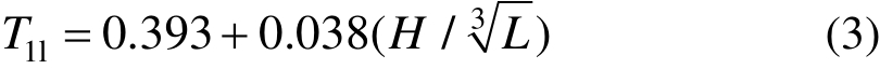 Fig.11 Empirical formula of fundamental vibration period in the longitudinal direction