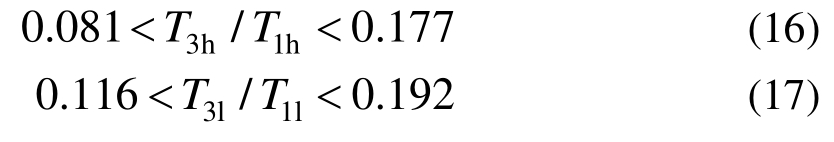 式中:T3h/T1h 的总体均值为0.104,离散系数为0.007;T3l/T1l 的总体均值为0.146,离散系数为0.006,该结果符合高层建筑结构基本原理[22]。