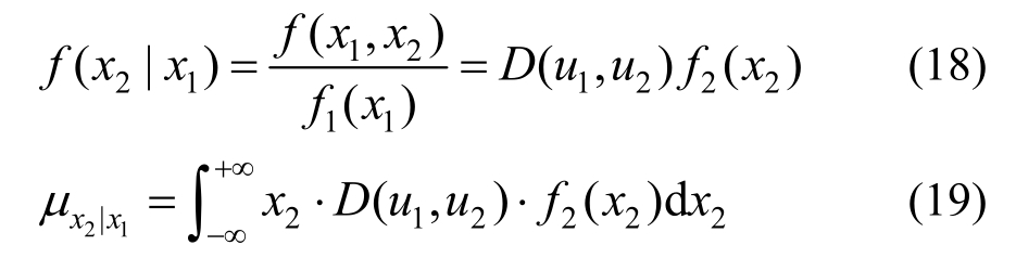 其中F1(x1)和F2(x2)分别为X1和X2的边缘累积分布函数,f1(x1)和f2(x2)分别为X1和X2的边缘概率密度函数;