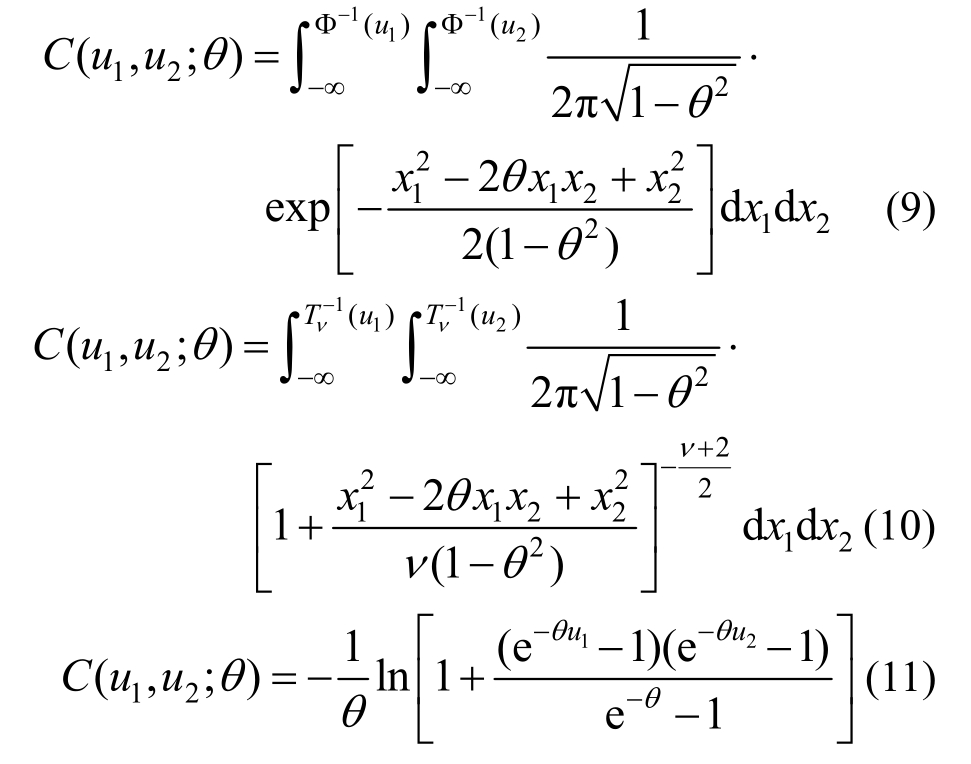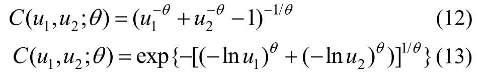 Frank Copula、Clayton Copula和Gumbel Copula函数的相关参数可分别按下式计算: