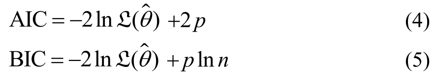 为其估计参数;p为估计参数的数目;n为样本容量。