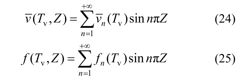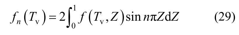 (Tv ,Z )和自由项f(Tv,Z)按关于Z的固有函数展开可得: