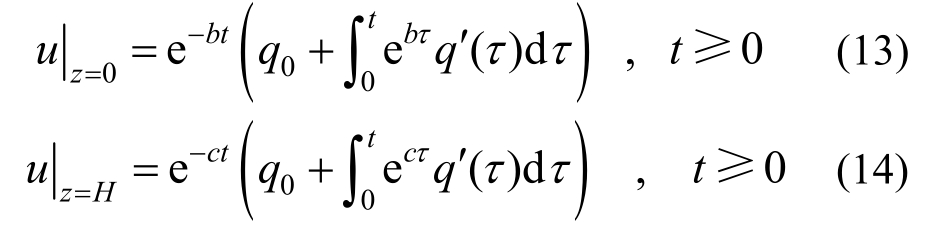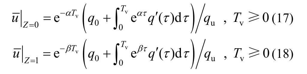 式中:p为骤加荷载,b>0且为边界上下界面参数,反映的是土体排水界面的排水性能,b越大,边界的排水性能越好。