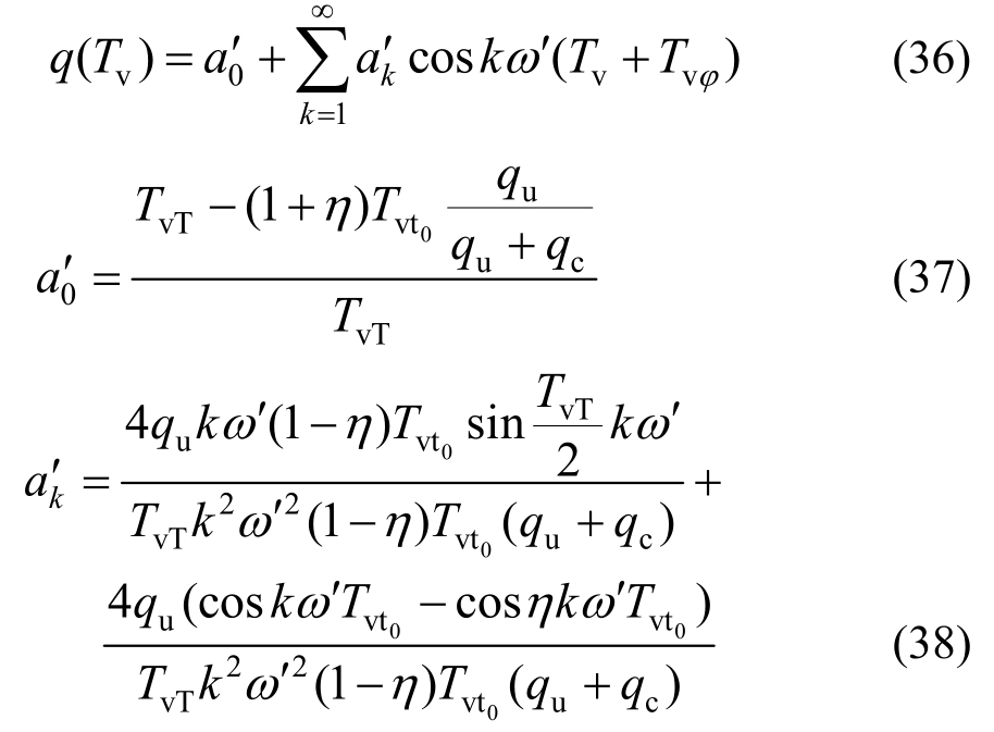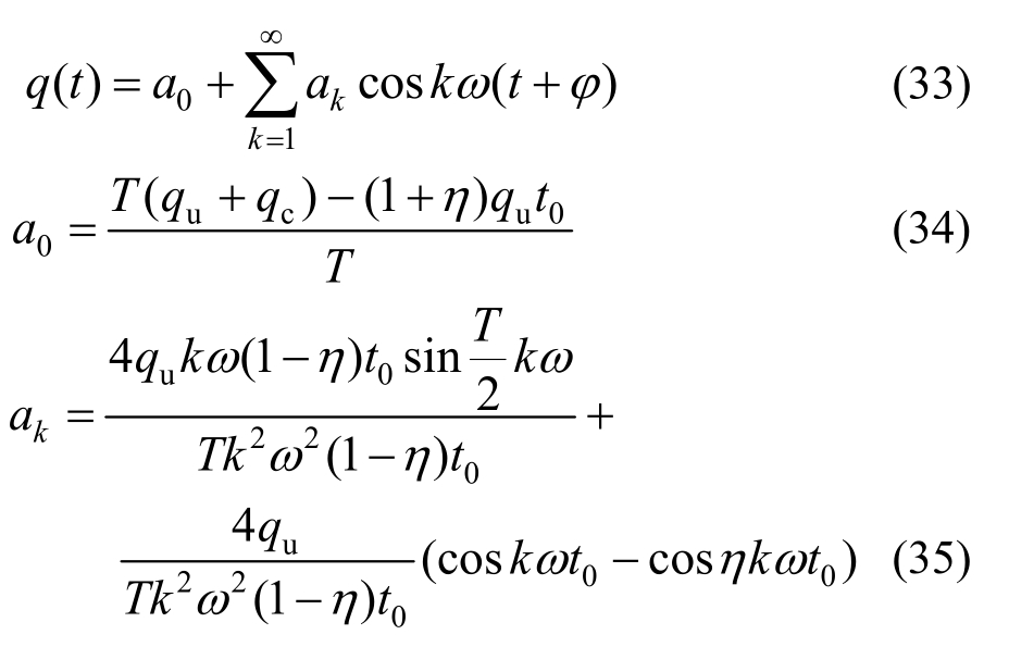 考虑梯形循环荷载的第一个左半周期,由傅里叶的余弦展开公式,得: