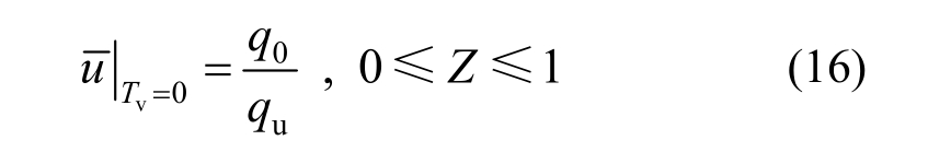 可以看出,某一深度z处,当t=0时,孔压为p,当0<t<∞时,孔压随时间单调递减,当t=∞时,孔压为零,消散完成,又结合孔压解答式为指数型,综合这几个特点,梅国雄等[19]提出了连续排水边界条件: