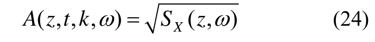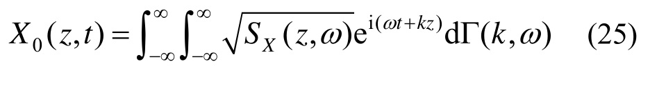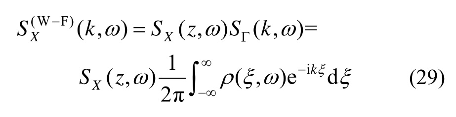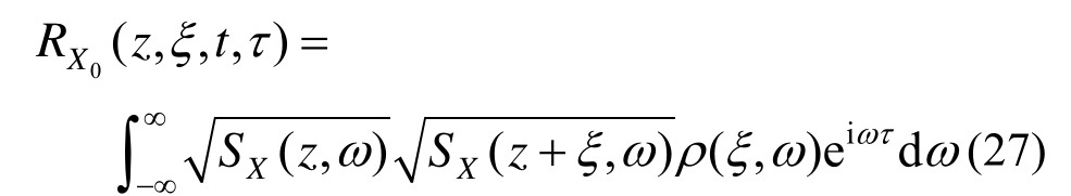 可以发现,对X(z,t)的功率谱密度函数,即式(19)进行Fourier变换后,正是式(27),这说明由均匀随机场Γ(z,t)经过调制后得到的非均匀随机场X0(z,t)就是X(z,t)。